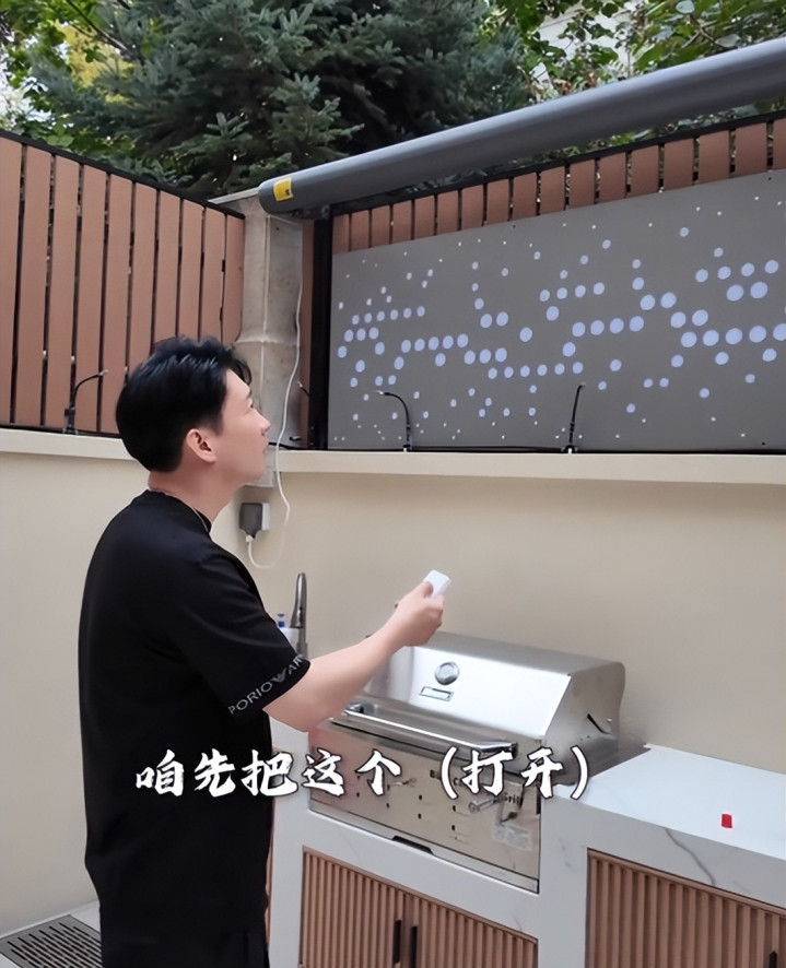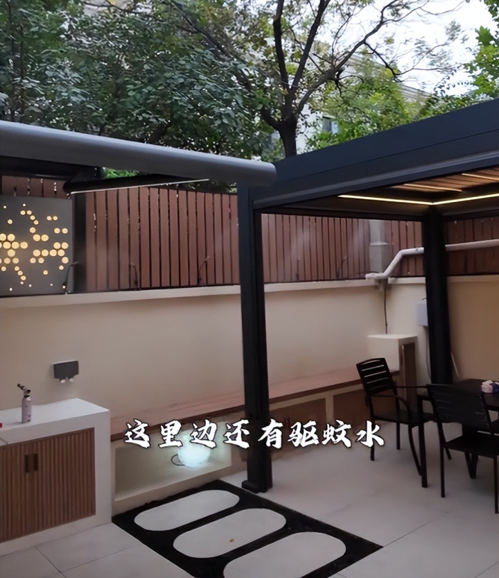 不得不说,曹云金真的是太懂享受了,在自己家的别墅里整了个小院不说,还弄了这么多高科技设备,看着就让人喜欢,遮阳板一开,这感觉就上来了,凉快又舒适。