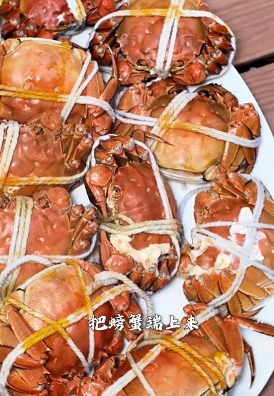准备工作做好之后,朋友也陆陆续续登门了,随后,曹云金就把事先准备好的大闸蟹给端了上来,个大饱满色泽金黄,光是看着就让人流口水。