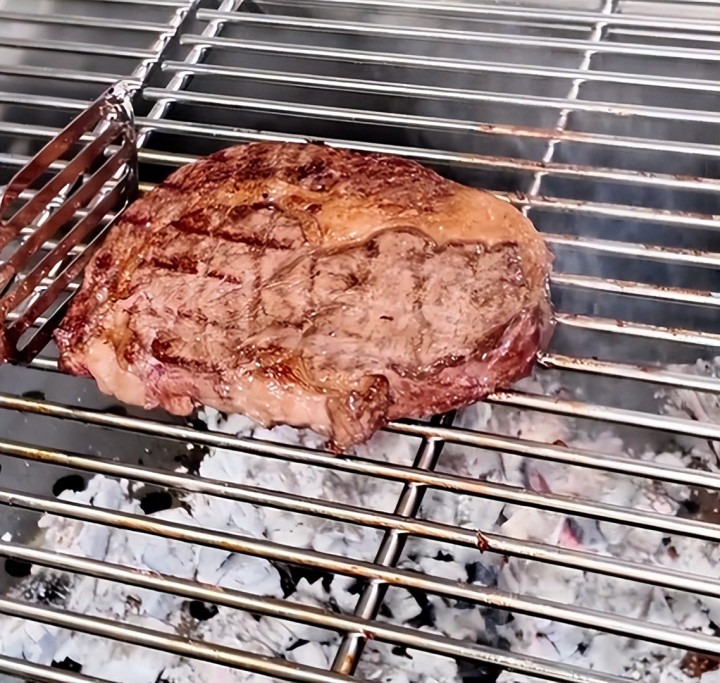 吃到这会儿,炭火已经烧的差不多了,曹云金将牛排拿出来解冻后,直接放到了准备好的炉子中,随着炭火的炙烤,牛排不断发出滋啦的声音,让人忍不住想要咬上一口。
